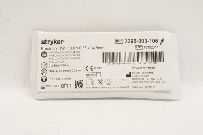 Stryker 2296-003-106 Precision Thin 13.0 x 0.38 x 34.5mm