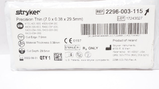 Stryker 2296-003-115 Precision Thin 7.0 x 0.38 x 29.5 mm (x)
