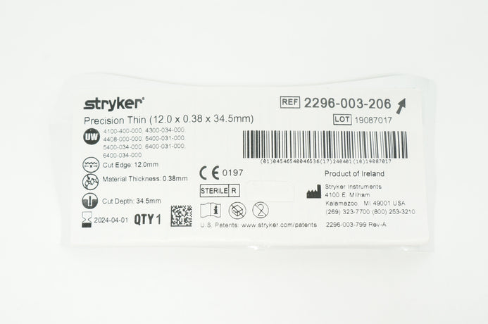 - Stryker 2296-003-206 Precision Thin Blade 12.0mm x 0.38mm x 34.5mm (x)
