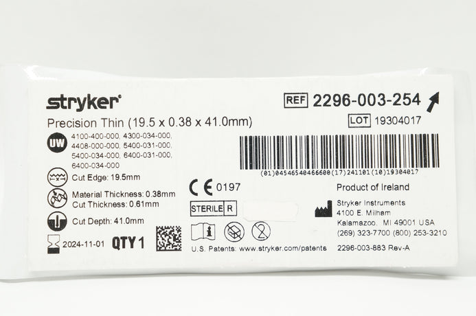 Stryker 2296-003-254 Precision Thin 19.5 x 0.38 x 41.0mm