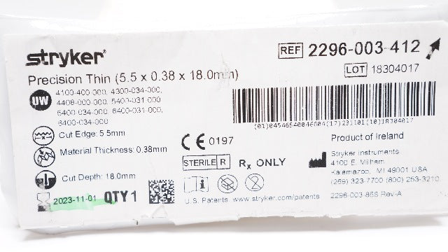 Stryker 2296-003-412 Precision Thin 5.5 x 0.38 x 18.0mm (x)
