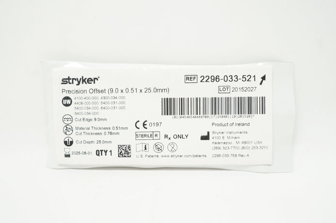 - Stryker 2296-033-521 Precision Offset 9.0 x 0.51 x 25.0mm (x)