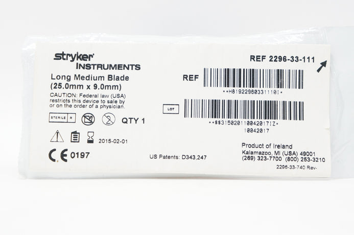 - Stryker 2296-33-111 Long Medium Blade 25.0mm x 9.0mm (x)
