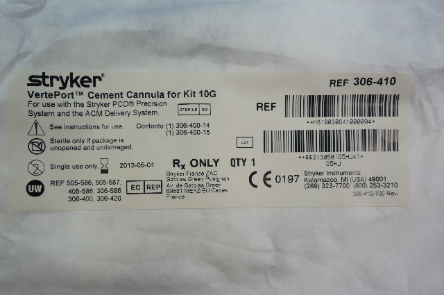 - Stryker 306-410 VertePort Cement Cannula for Kit 10G (x)