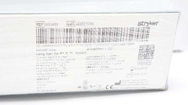 Stryker 3420-0420S Long Nail Kit R1.5, Ti, Right 10 x 420mm x 120°
