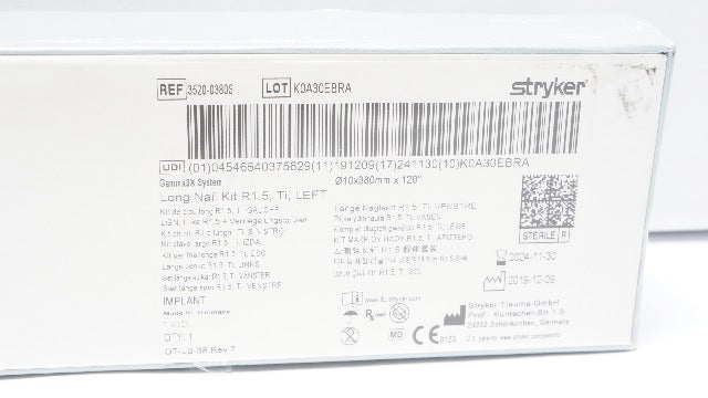 Stryker 3520-0380S Long Nail Kit R1.5, Ti, Left 10 x 380mm x 120° (x)