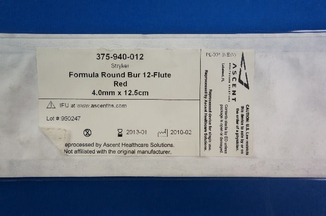 - Stryker 375-940-012 Formula Round B u r 12-Flute Red 4.0mm x 12.5cm (x)