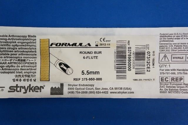 - Stryker 375-950-000 Formula Round Bur 6-Flute 5.5mm (x)