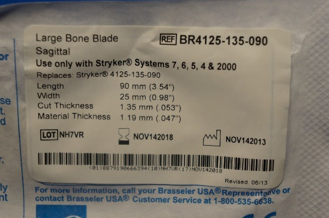 - Stryker 4125-135-090 Large Bone Sagittal Blade 90 x 25 x 1.35mm (x)