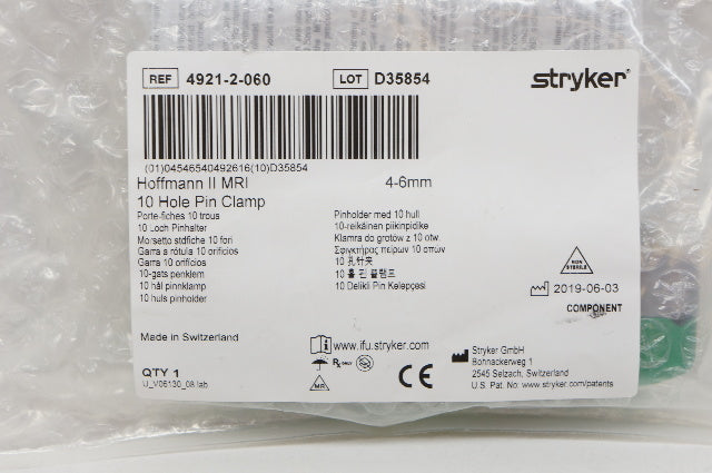 - Stryker 4921-2-060 Hoffmann II MRI 10 Hole Pin Clamp, 4-6mm