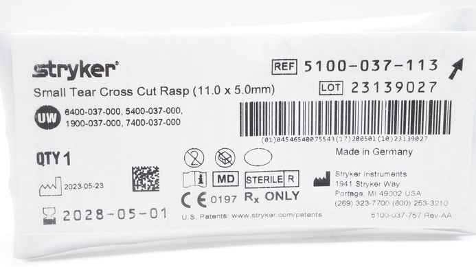 Stryker 5100-037-113 Small Tear Cross Rasp 11.0 x 5.0mm