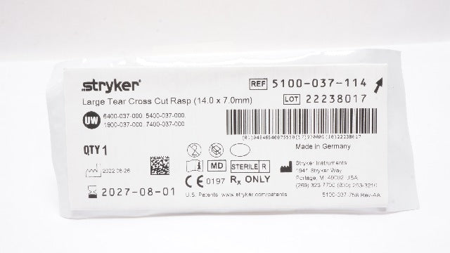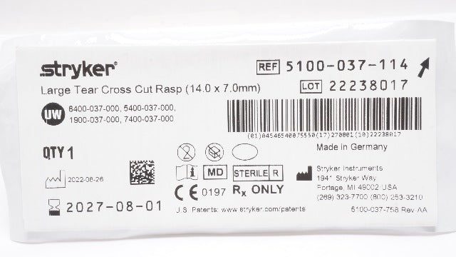 Stryker 5100-037-114 Large Tear Cross Rasp 14.0 x 7.0mm