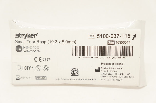 - Stryker 5100-037-115 Small Tear Rasp 10.3 x 5.0 mm (x)