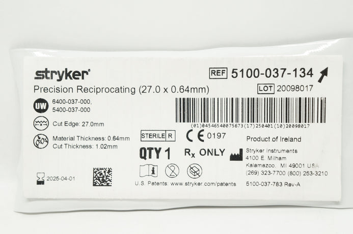 Stryker 5100-037-134 Precision Reciprocating 27.0 x 0.64mm
