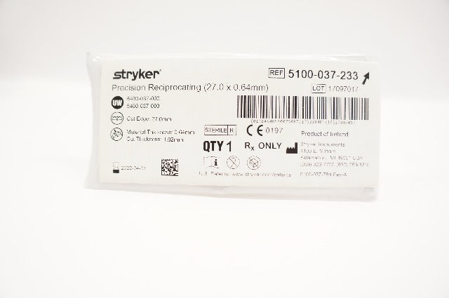 - Stryker 5100-037-233 Precision Reciprocating Saw Blade 27.0mm x 0.64mm (x)
