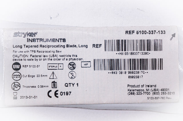 - Stryker 5100-337-133 Long Tapered Reciprocating Blade, Long 22.5mm x 0.38mm (x)