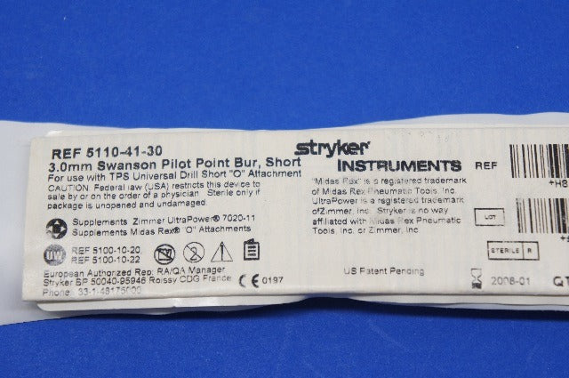 - Stryker 5110-41-30 3.0mm Swanson Pilot Point Bur, Short (x)