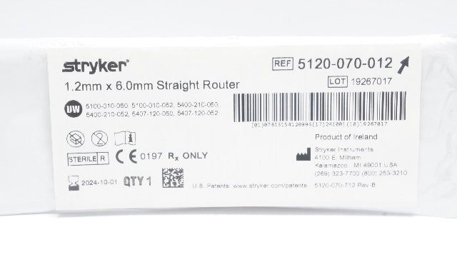 - Stryker 5120-070-012 1.2mm x 6.0mm Straight Router (x)