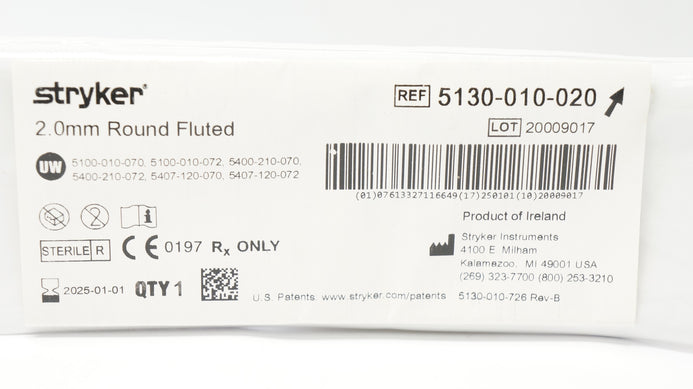 Stryker 5130-010-020 Round Fluted Bur 2.0mm
