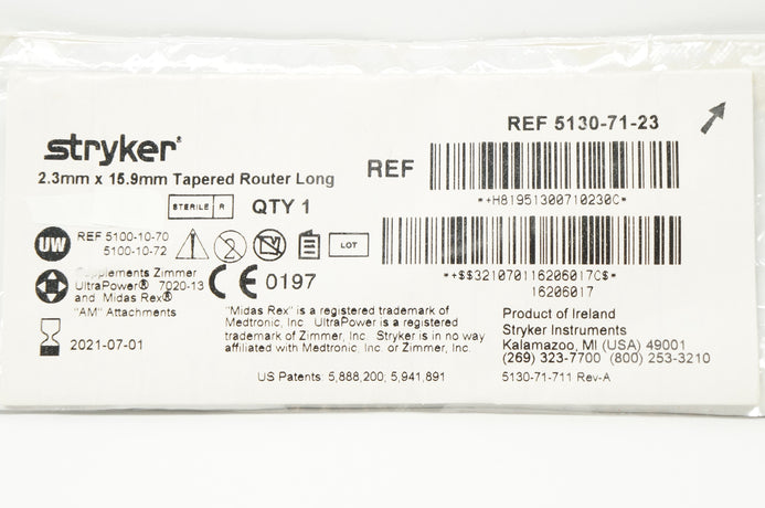 Stryker 5130-71-23 Tapered Router Long 2.3mm x 15.9mm