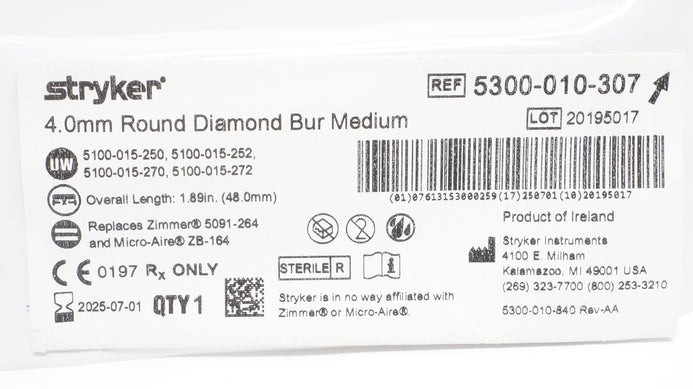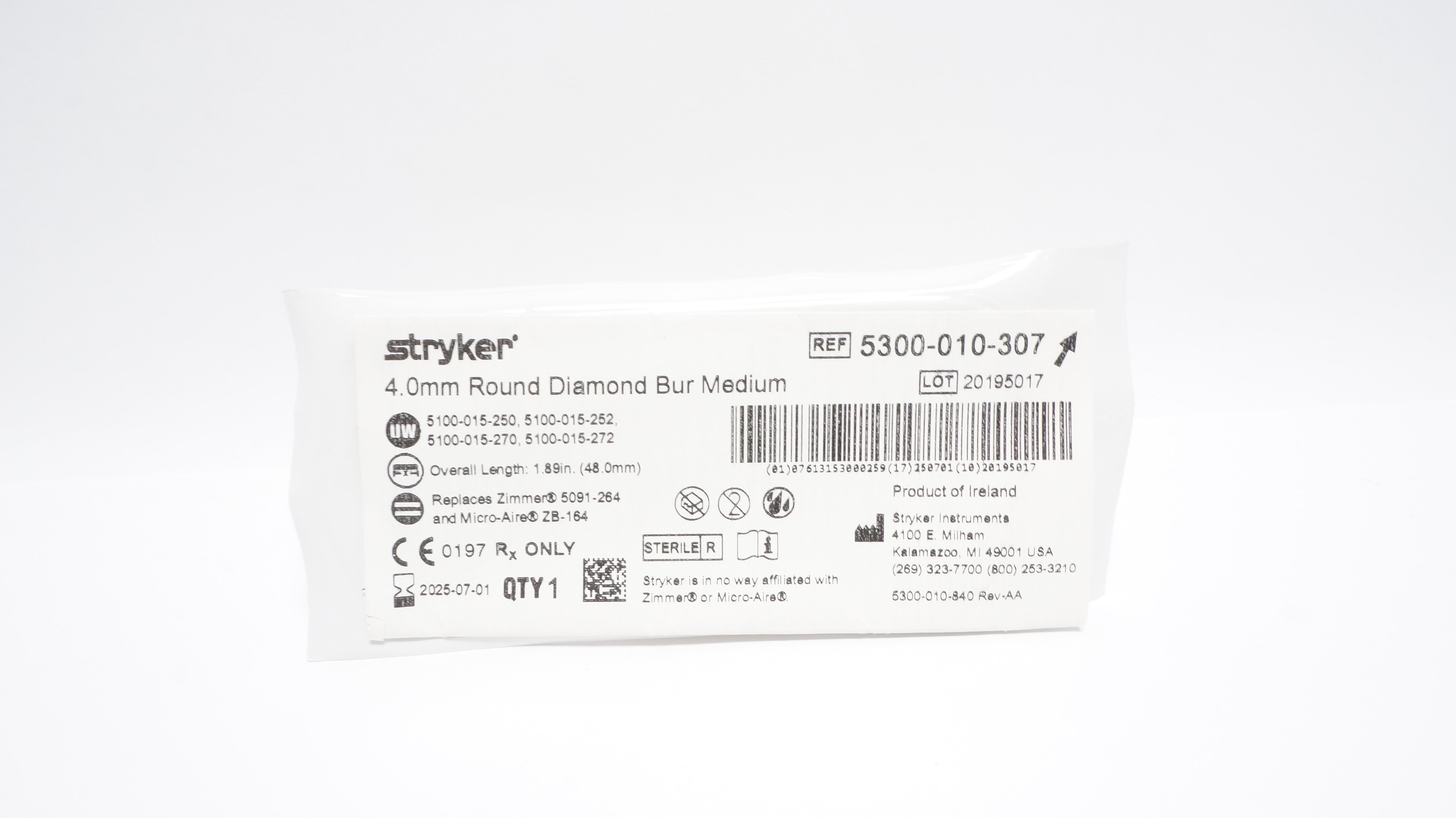 - Stryker 5300-010-307 Round Diamond Bur Medium 4.0mm (x)