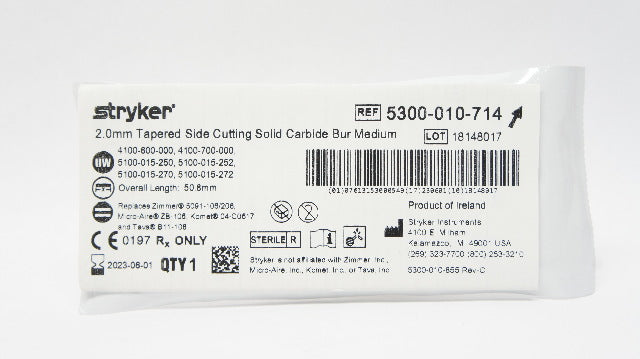 - Stryker 5300-010-714 2.0mm Tapered Side Cutting Solid Carbide Bur Medium