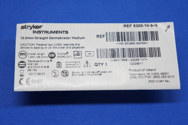 Stryker 5300-10-945 Straight Dermabrader Medium 12.0mm (x)