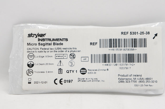 - Stryker 5301-25-38 Micro Sagittal Blade 9.5 x 25.5 x 0.4mm