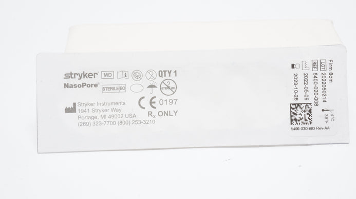 Stryker 5400-020-008 Nasopore Fragmentable Nasal Dressing Firm 8cm