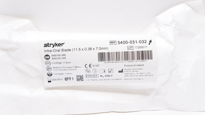 - Stryker 5400-031-032 Intra-Oral Blade 11.5 x 0.38 x 7.0mm (x)