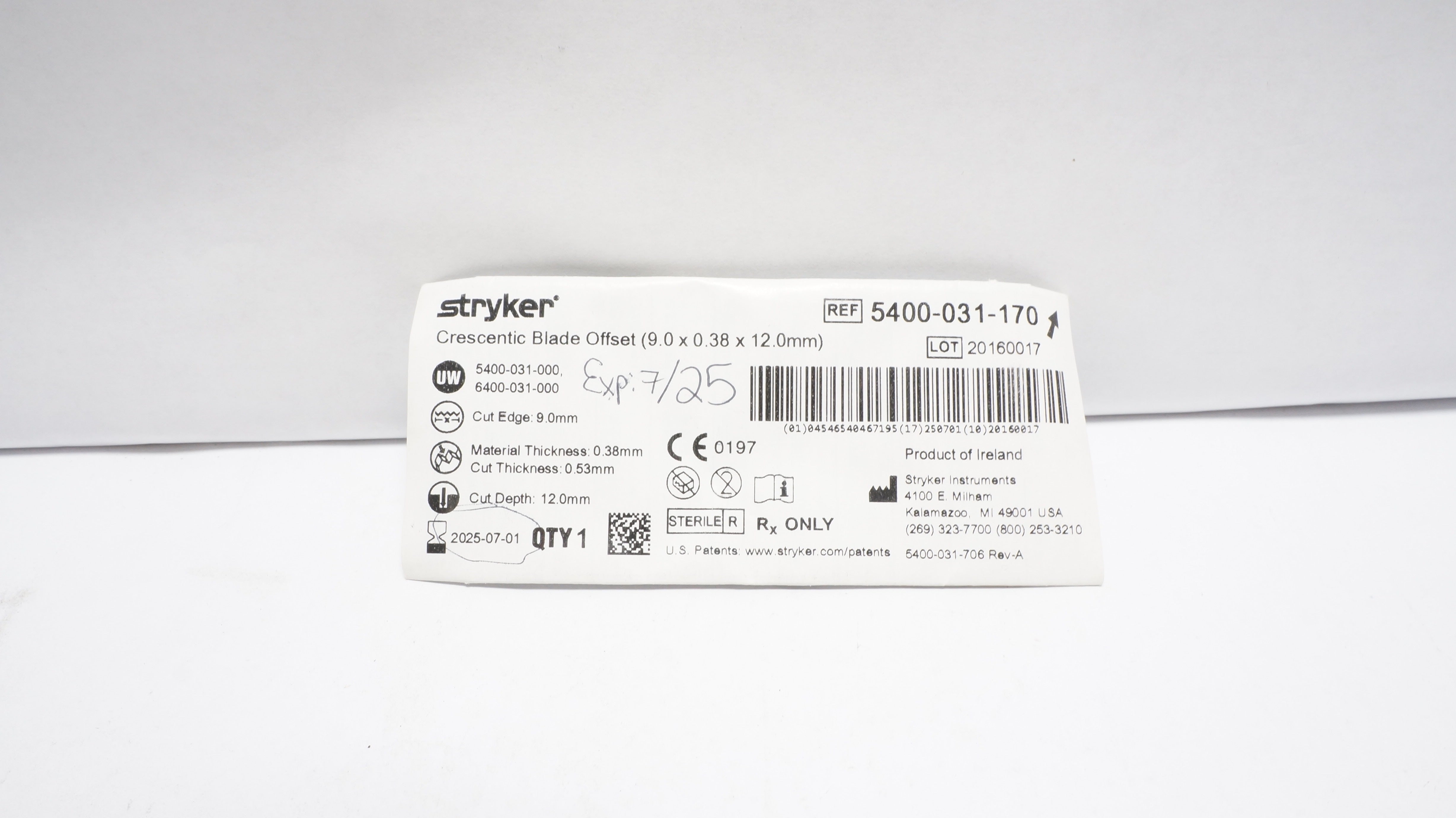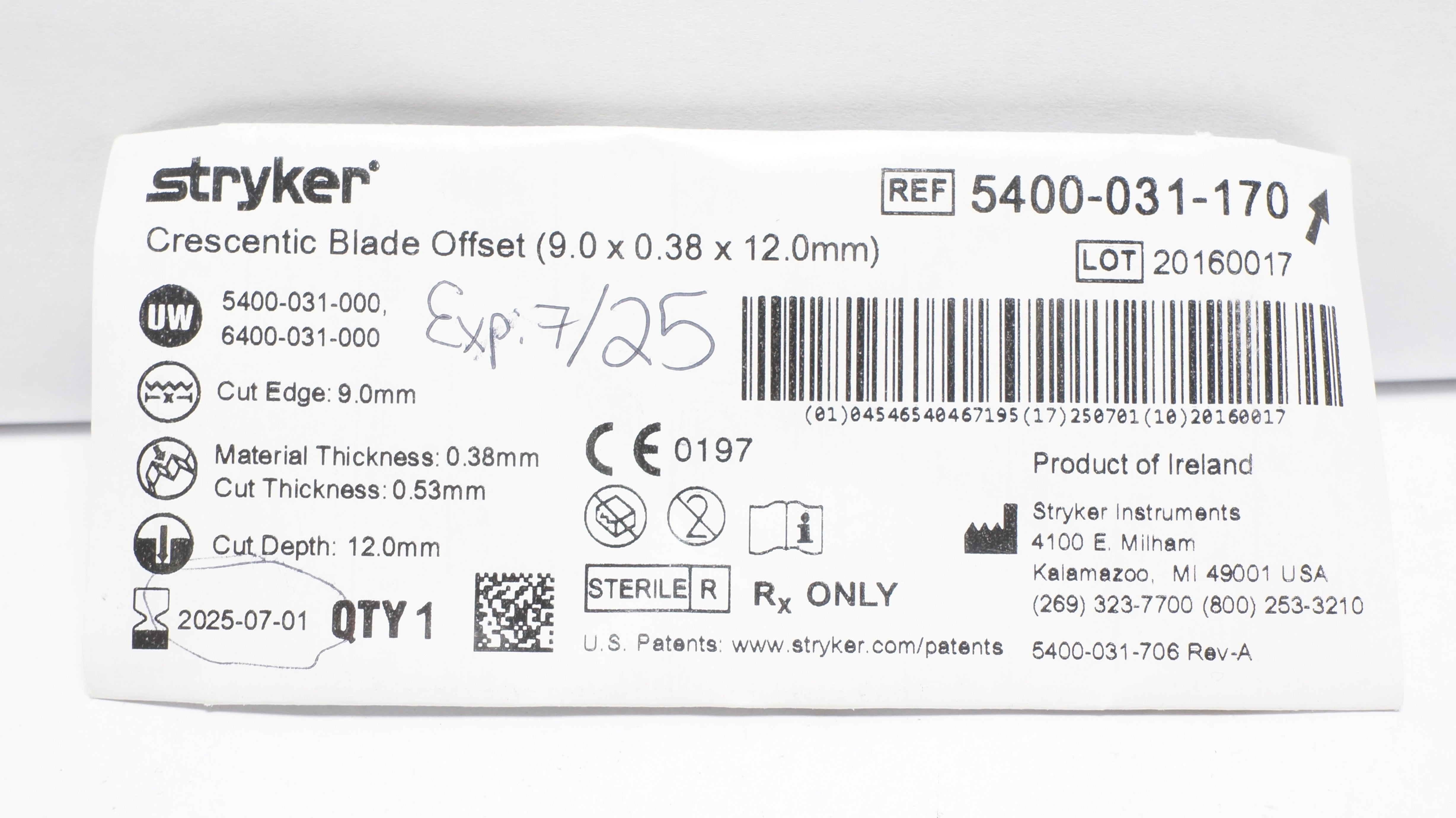 - Stryker 5400-031-170 Crescentic Blade Offset 9.0 x 0.38 x 0.53 x 12.0mm (x)