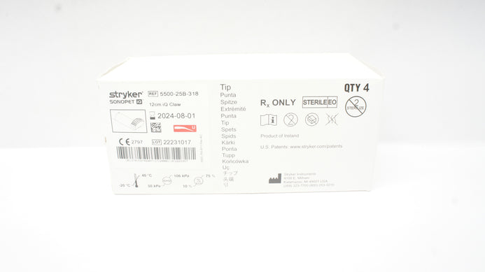 - Stryker 5500-25B-318 Sonopet IQ 12 cm IQ Claw Tip (x) - Box of 4