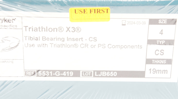 - Stryker 5531-G-419 Triathlon X3 Tibial Bearing Insert-CS, Size 4, 19mm (x)