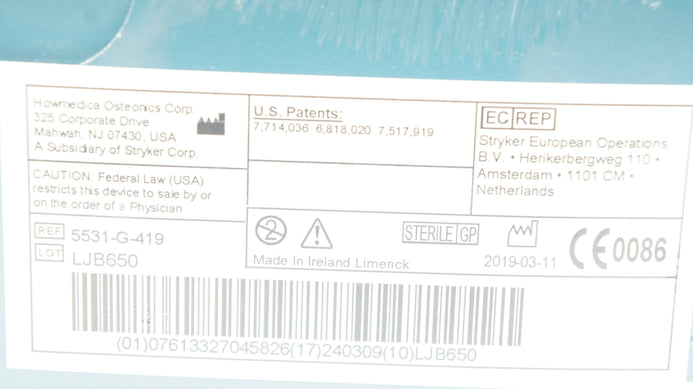 Stryker 5531-G-419 Triathlon X3 Tibial Bearing Insert-CS, Size 4, 19mm (x)