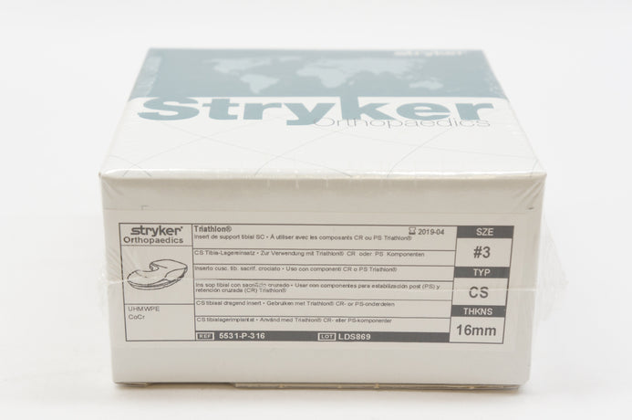 Stryker 5531-P-316 Triathlon Tibial Bearing Insert - CS, Size #3, 16mm (x)