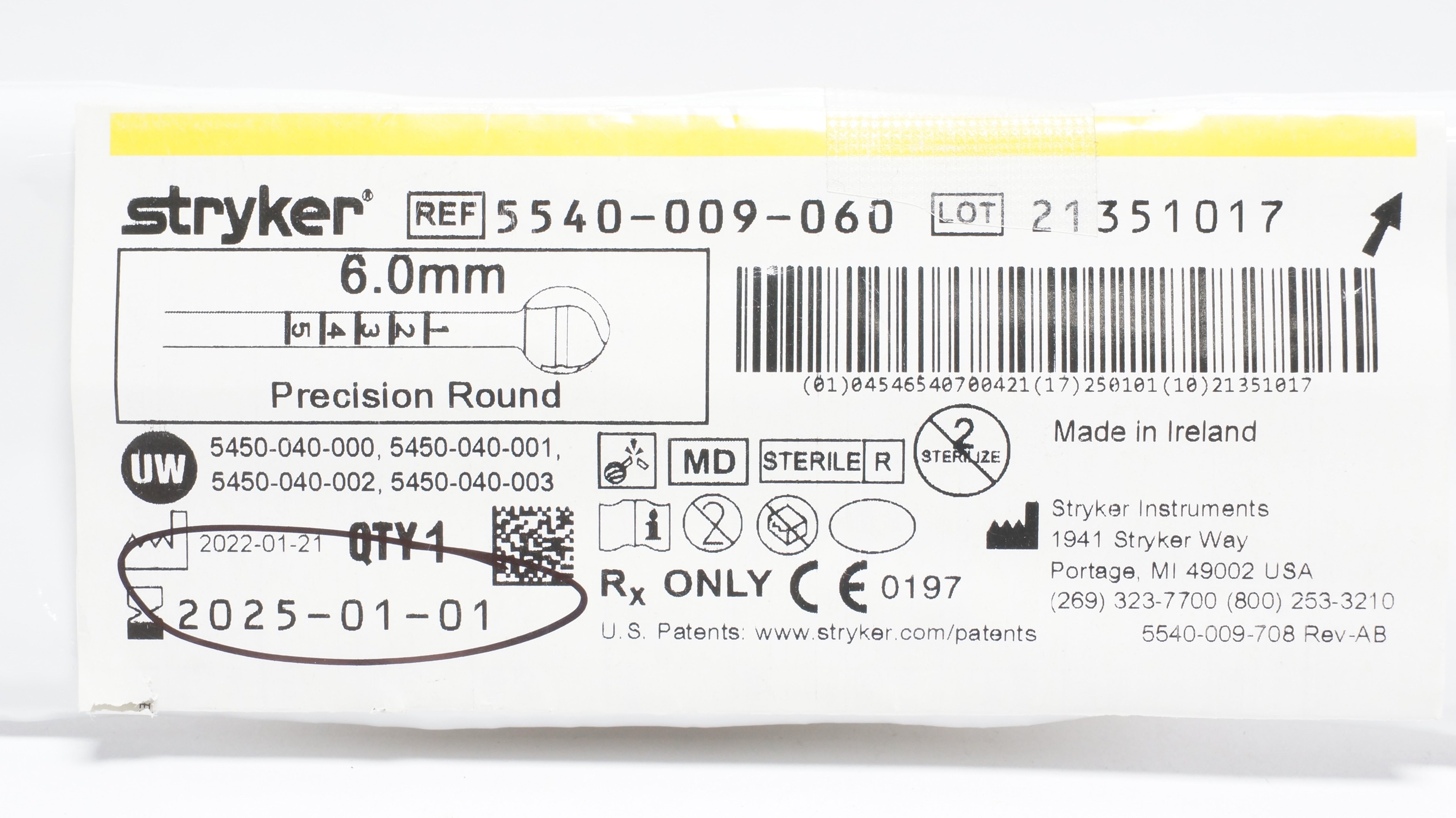 Stryker 5540-009-060 Precision Round 6.0mm