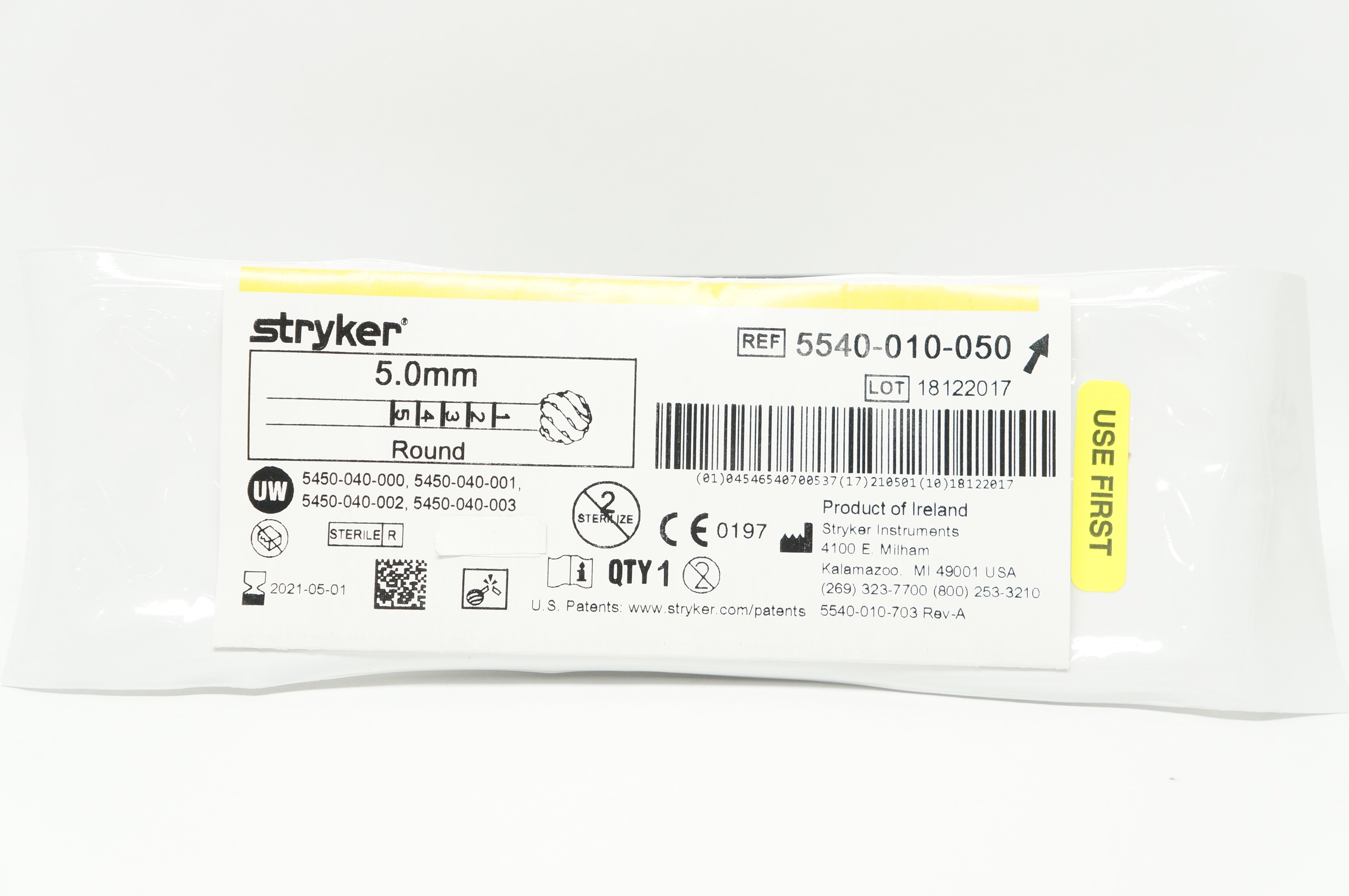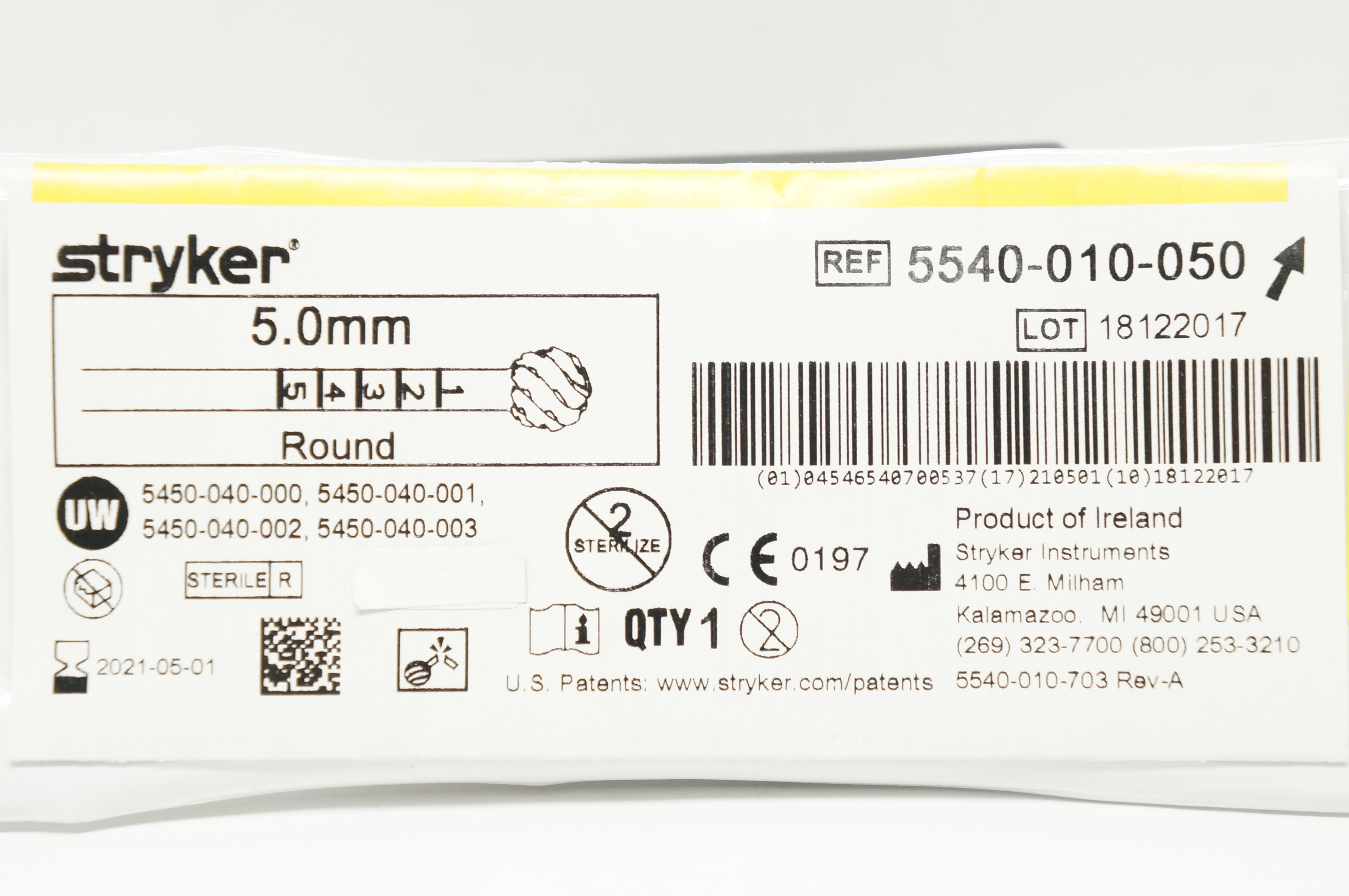 Stryker 5540-010-050 Round Fluted Bur, 5.0mm (x)