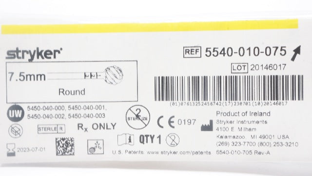 - Stryker 5540-010-075 Round Bur 7.5mm (x)