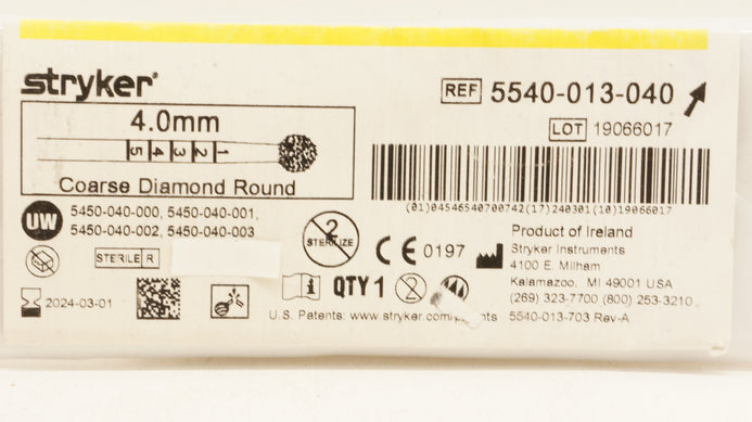 - Stryker 5540-013-040 Coarse Diamond Round 4.0mm