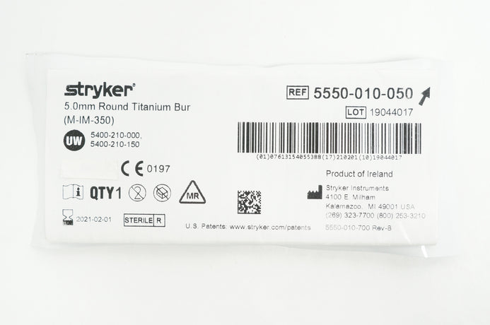 - Stryker 5550-010-050 Round Titanium Bur M-IM-350 (x)