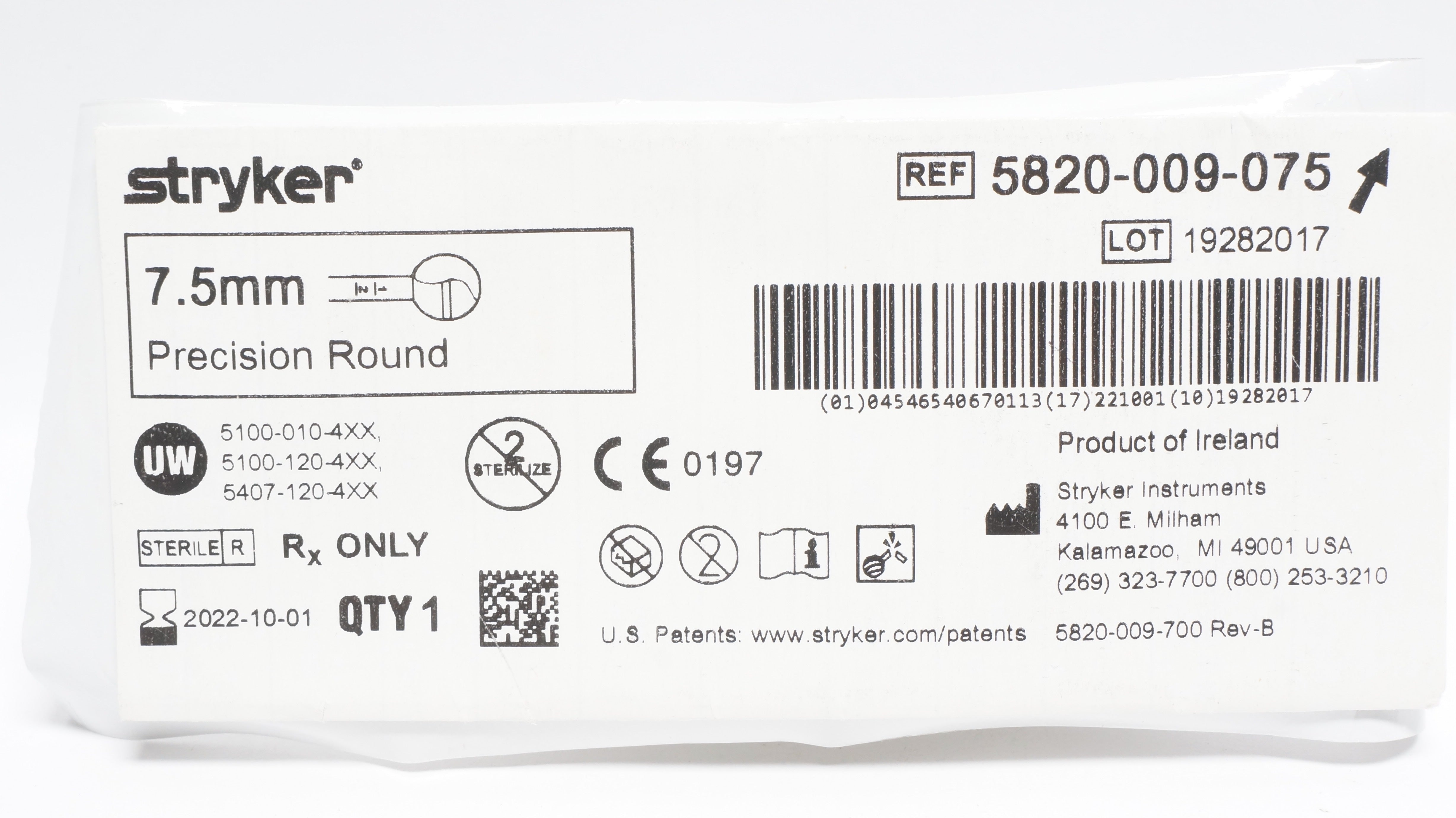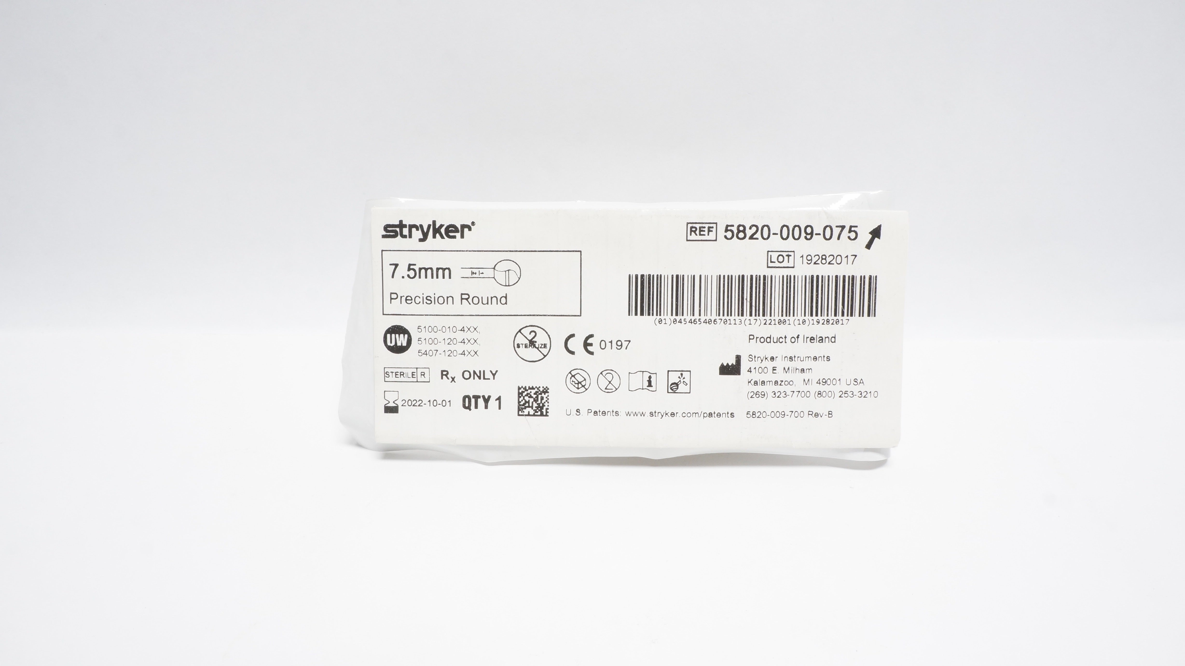 - Stryker 5820-009-075 Precision Round Bur 7.5mm (x)