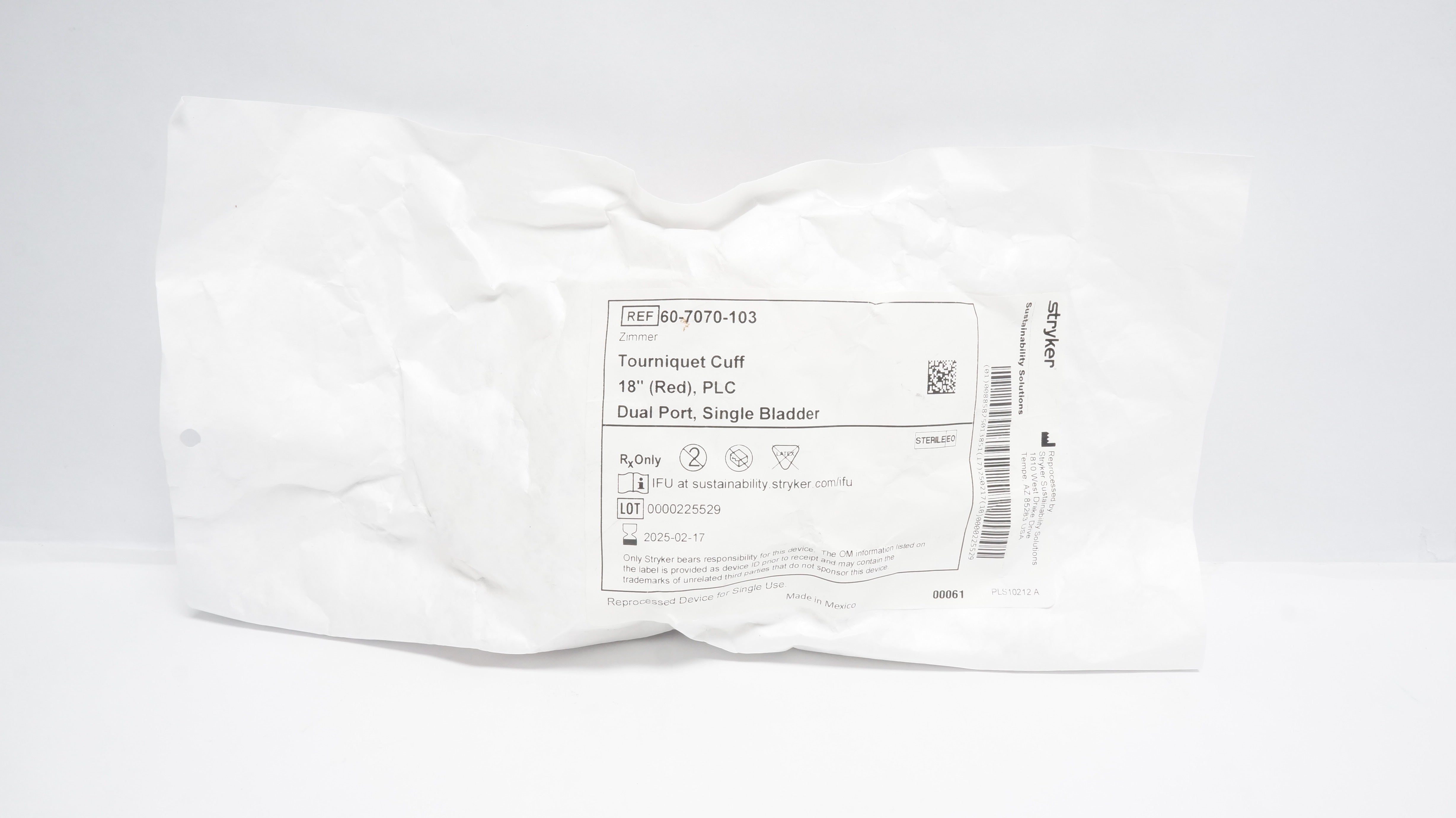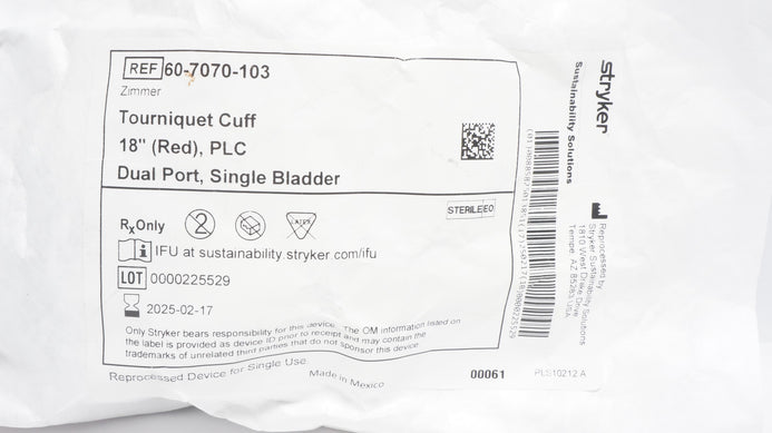 - Stryker 60-7070-103 Tourniquet Cuff 18In Red, PLC Dual Port, Single Bladder (x)