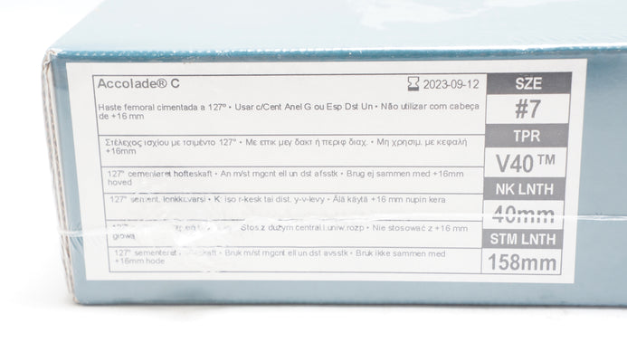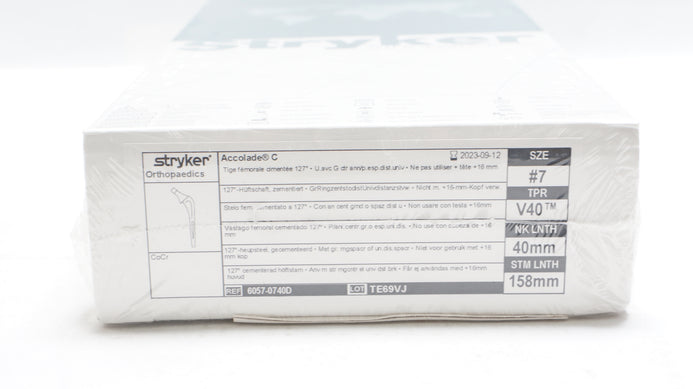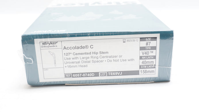 Stryker 6057-0740D Accolade 127° Comented Hip Stem Size 7,V40,40mm x 158mm (x)