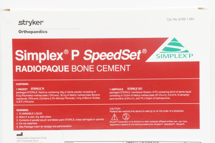 - Stryker 6192-1-001 Simplex P SpeedSet Radiopaque Bone Cement (x)