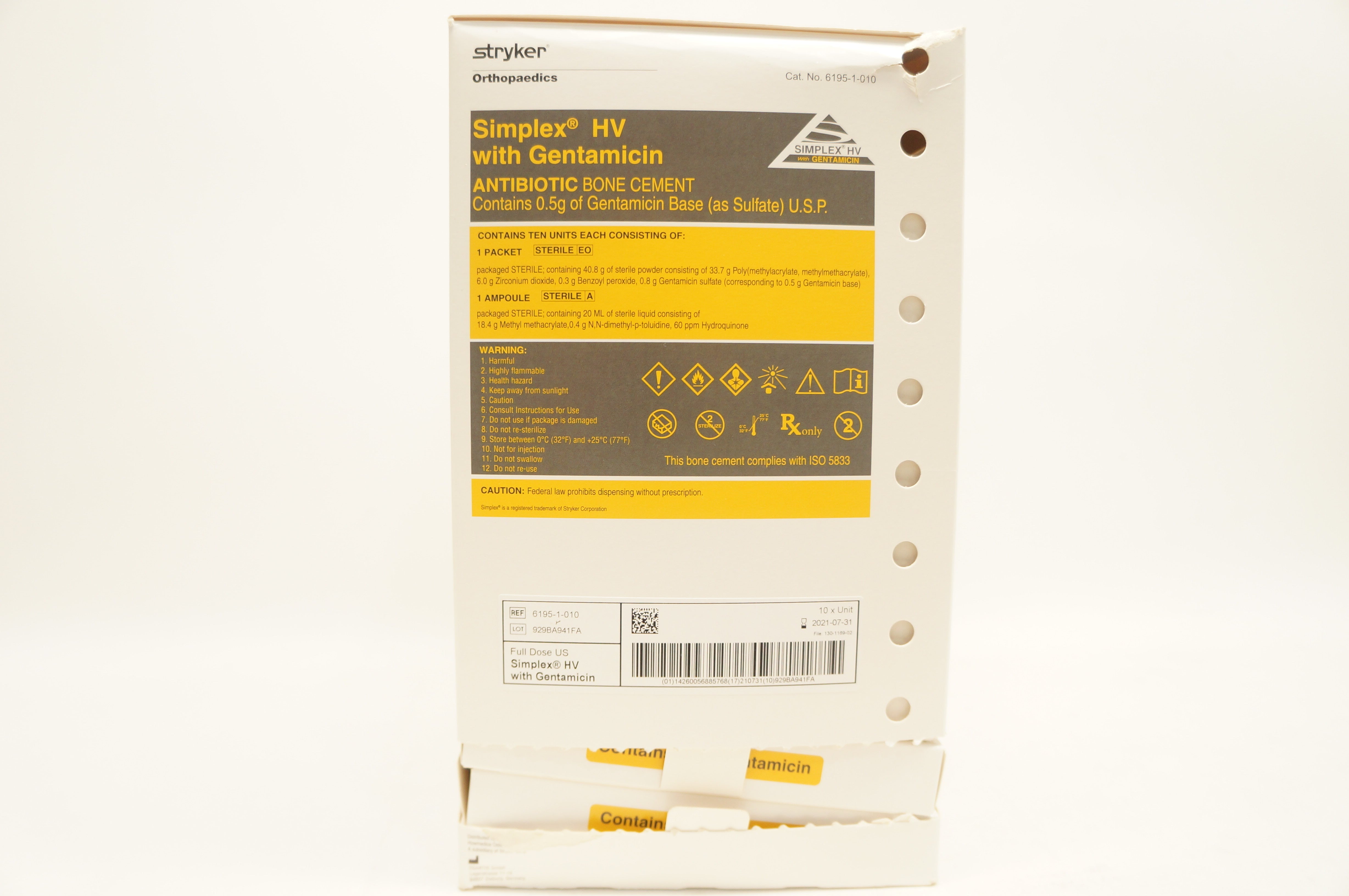 - Stryker 6195-1-010 Orthopaedics Simplex HV with Gentamicin - Box of 10 (x)