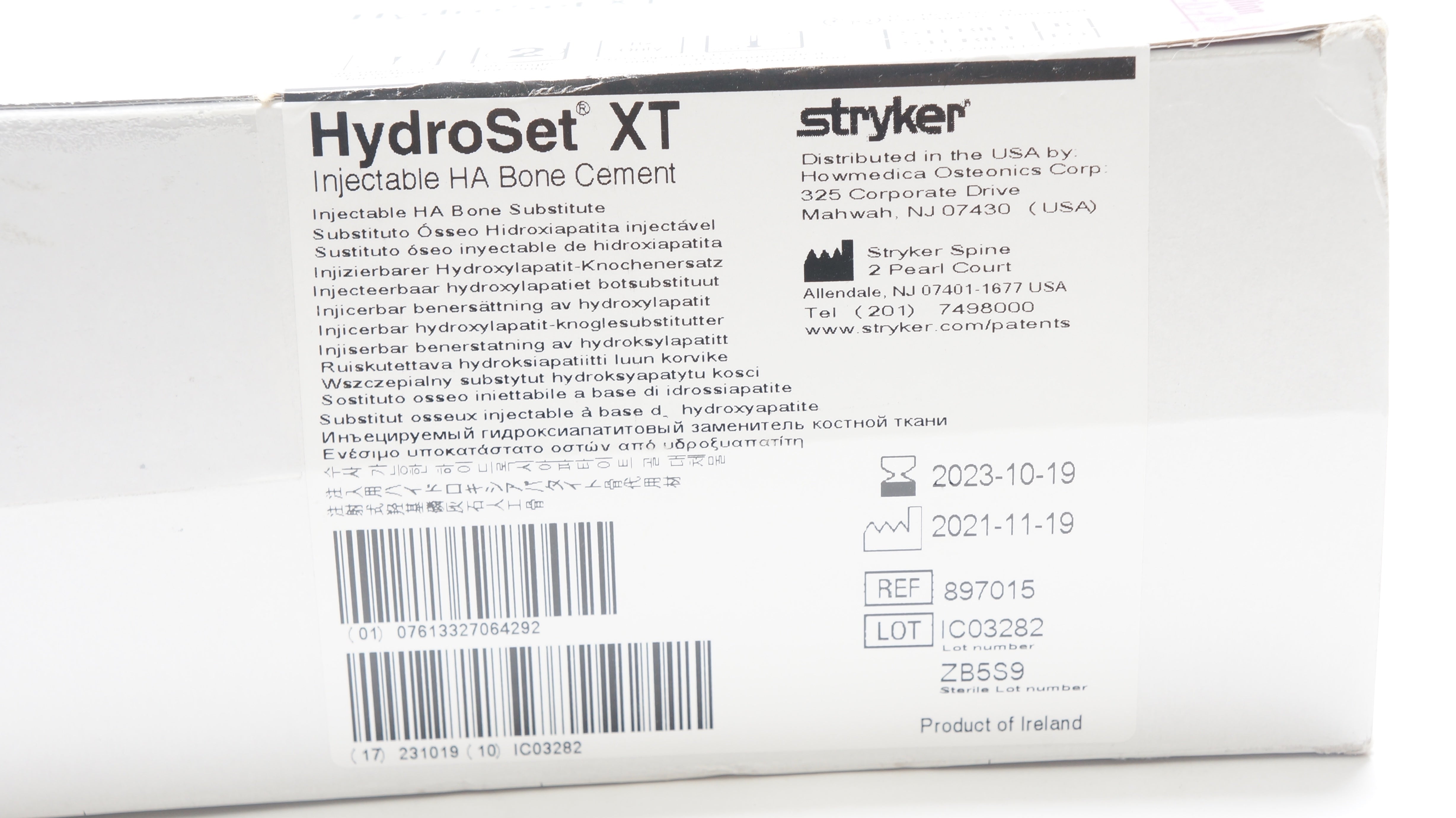 Stryker 897015 HydroSet XT Injectable HA Bone Cement 8ga - Box of 15cc (x)