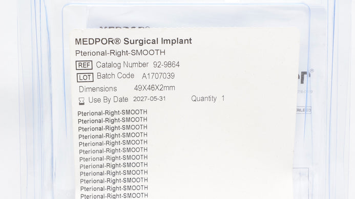- Stryker 92-9864 Medpor Surgical Implant Pterional Right Smooth