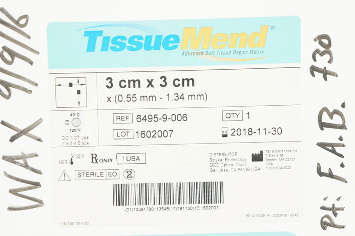 - Stryker Endoscopy 6495-9-006 TissueMend Advanced Soft Tissue 3 x 3cm (x)