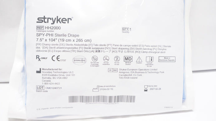 - Stryker HH2000 SPY-PHI Sterile Drape 7.5inch x 104inch