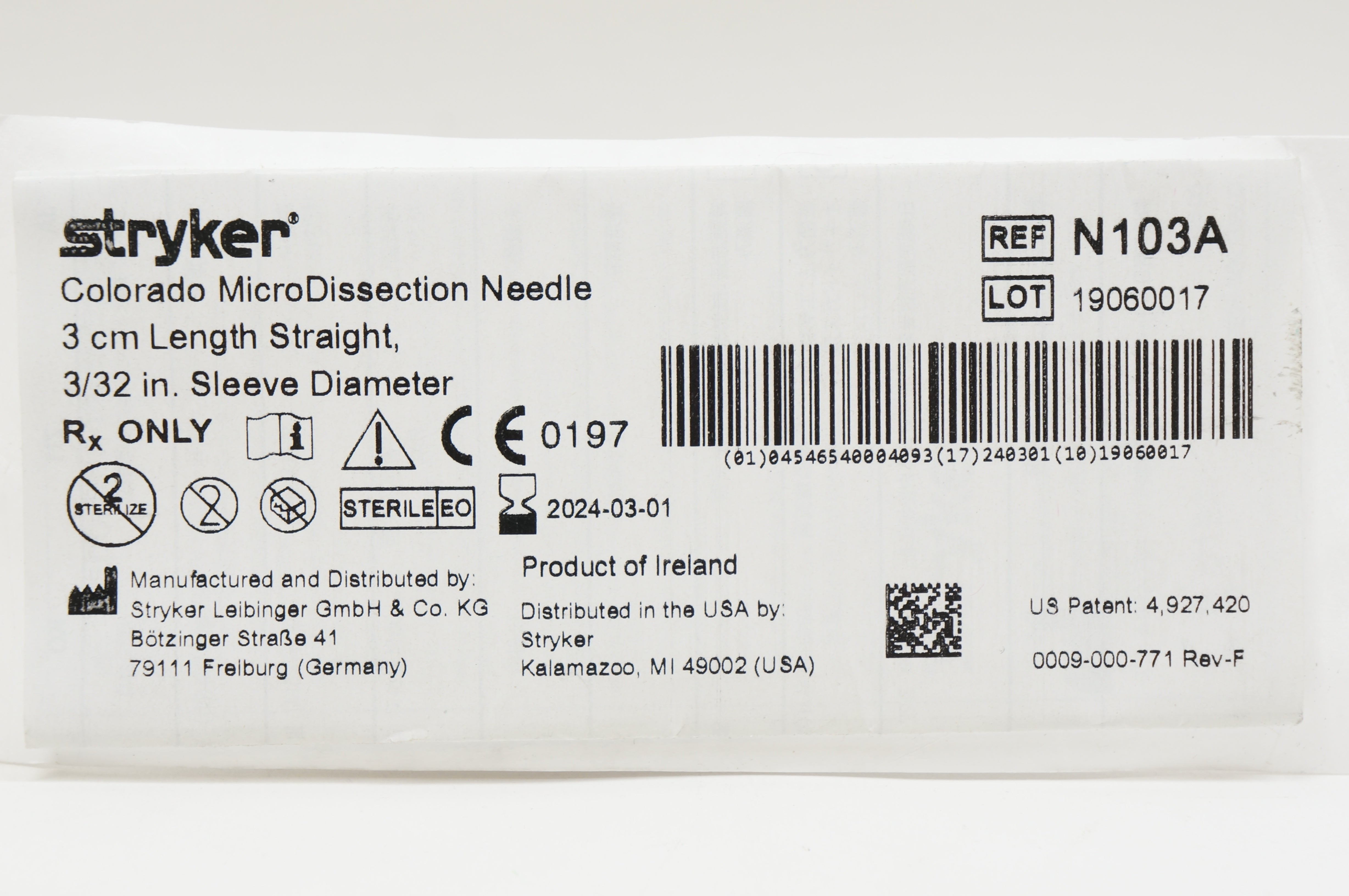 - Stryker N103A Colorado MicroDissection Ndle 3cm x 3/32inch